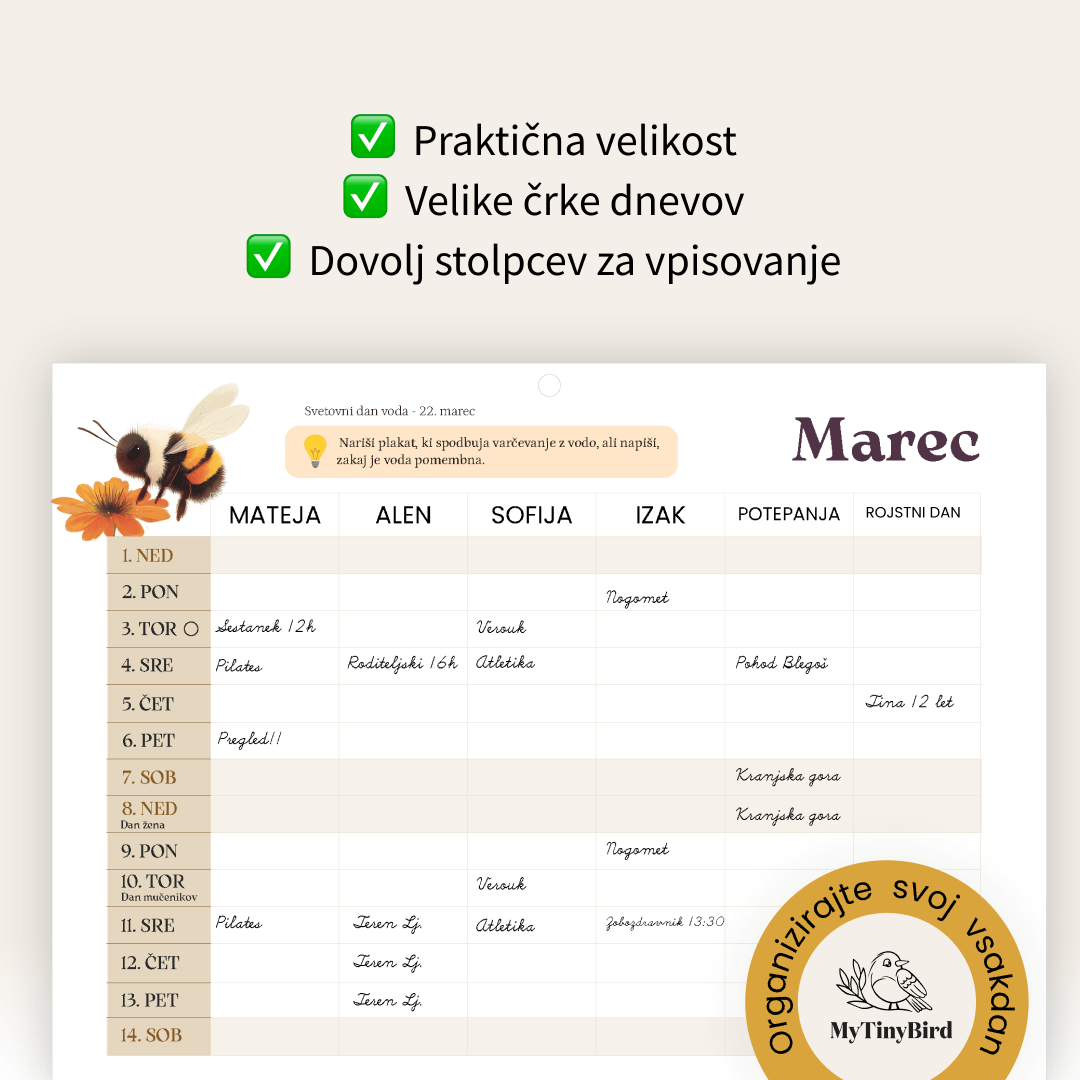 Poleg vsakodnevnih obveznosti je družinski koledar primeren tudi za označevanje pomembnih praznikov in dogodkov.