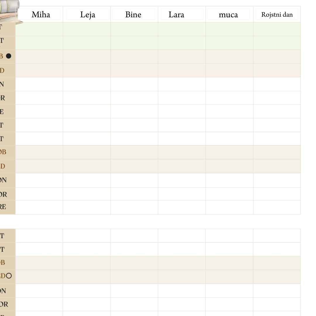 Koledar izdelan na podlagi lastne potrebe po beleženju vseh aktivnosti